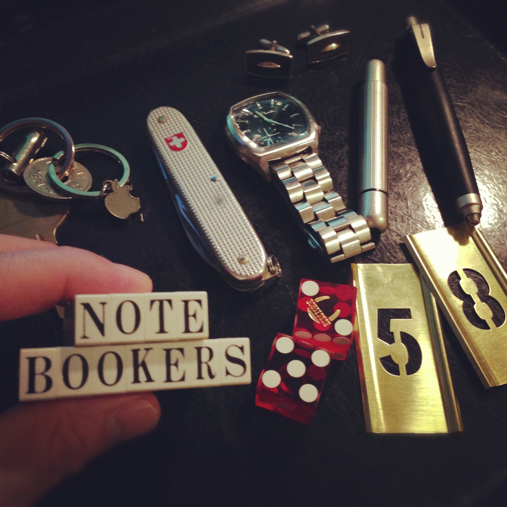 右側の真鍮のテンプレートは、All Ordinariesで売っていたもの。上からスプレーでぷしゅっと塗料をかけたり、ペンでなぞるときれいに文字をレイアウトできる。とある作業で使用したのだけど、近日トラベラーズノートの革の表面に文字を印字するのに使ってみようかなと思っている。