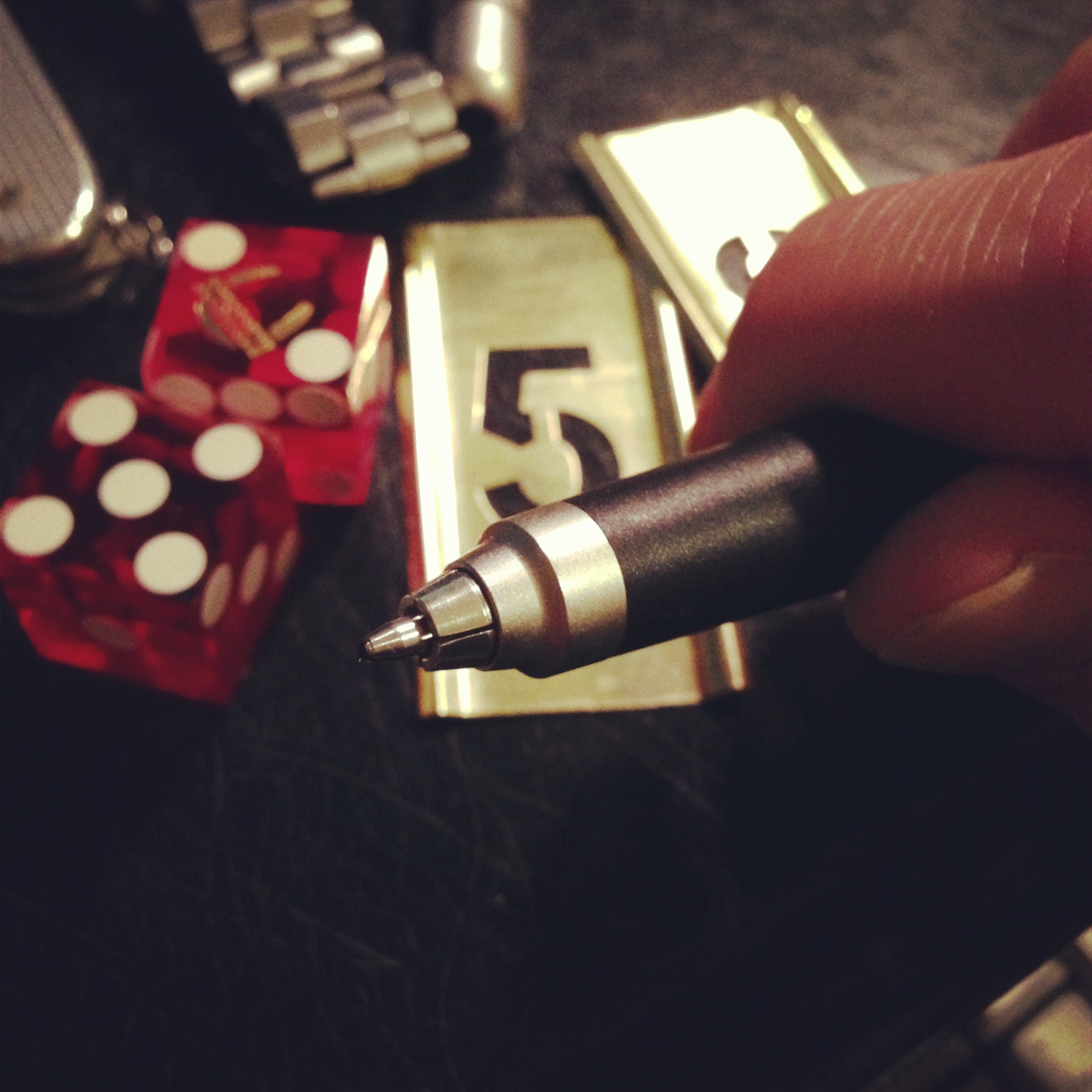 モレカウの記事ではおなじみのダイスは、カジノで使用されているもの。すべての目が同じ比重のプラスチックで埋められているので、理論上すべての面が同じ比率で数値が出現する。