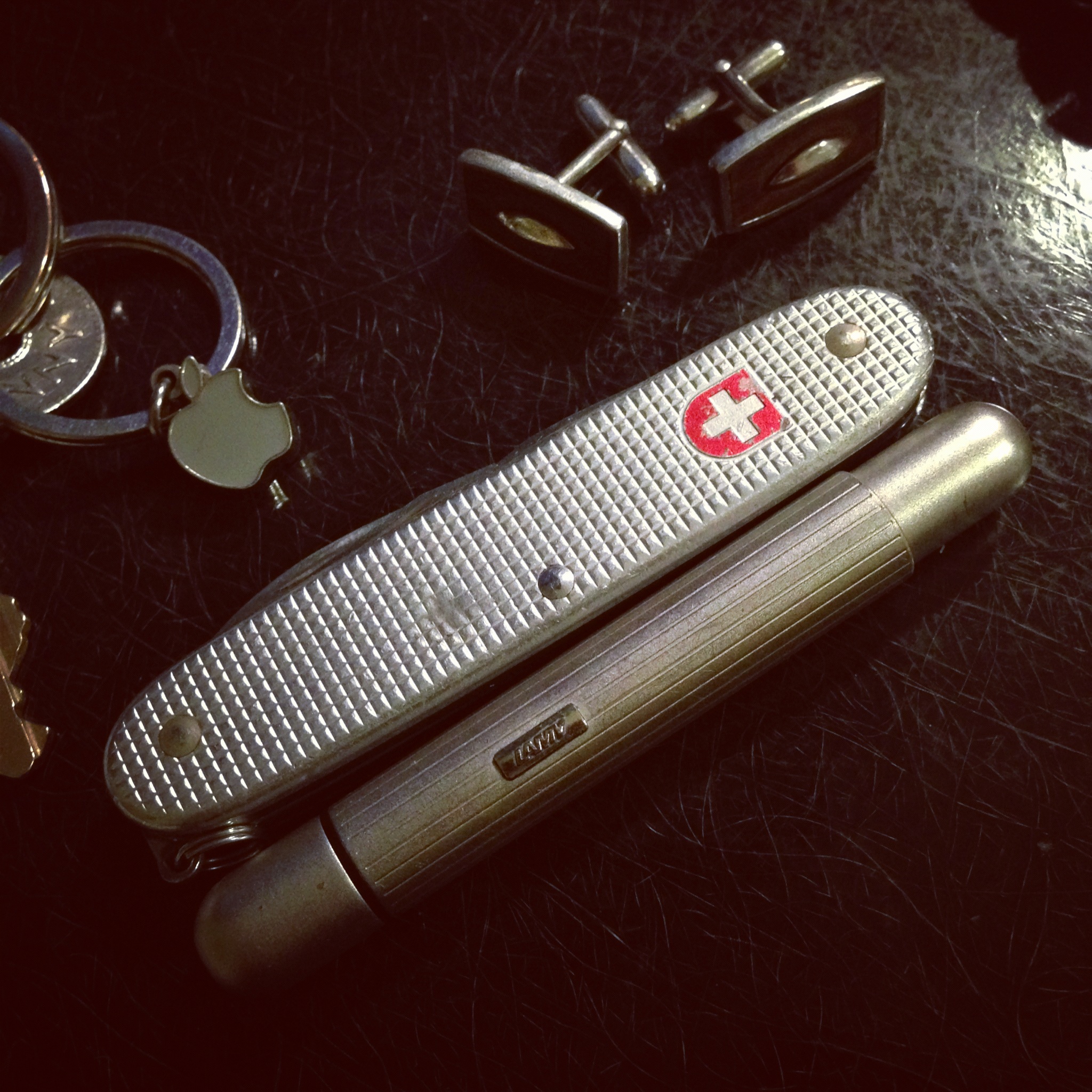 ビクトリノックスの「ソルジャー」とLAMY Picoが同じサイズであることに気付く。