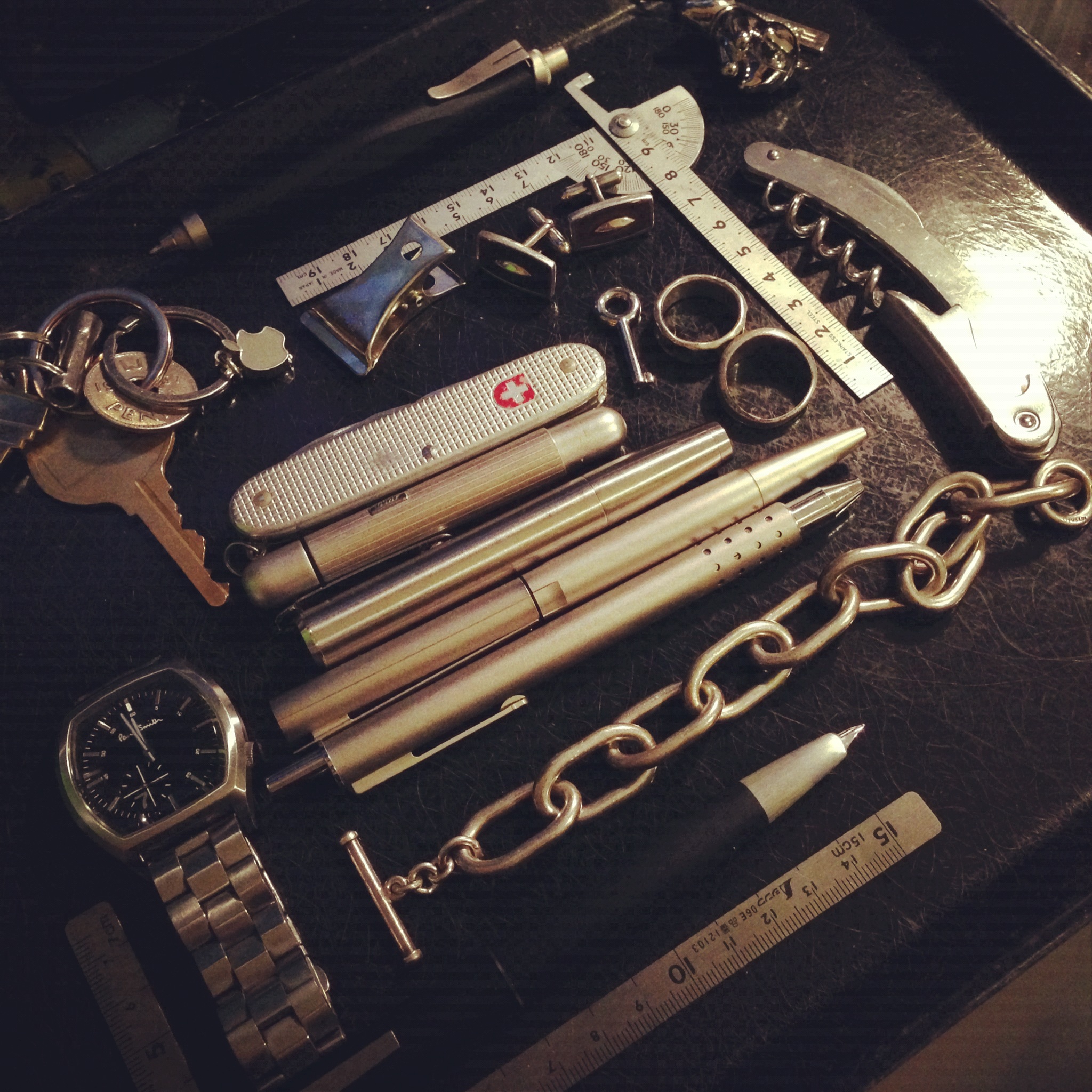 カフスボタンはシンプルなポール・スミスのものを愛用している。一度壊れてしまったのだけど、ショップに伝えたところなんと新品に取り替えてくれた。それ以来、スーツのときのシャツの袖にいつも収まっている。