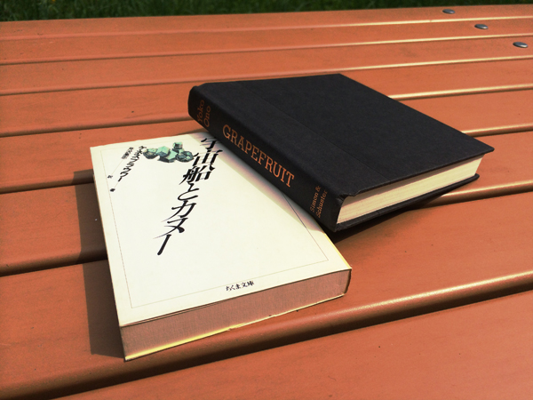 本は2冊くらいを常に持ち歩いている感じ。最近はケネス・ブラウワーの「宇宙船とカヌー」、オノ・ヨーコの”GRAPEFRUIT”。ゆっくりと音楽を聴きながらじっくり読みたい本と、拾い読みしながら楽しむ本など2冊をチョイスすることが多いかも。